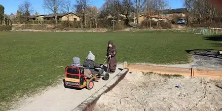 Børn som sover bliver puttet og dem som ikke sover går på legepladsen.