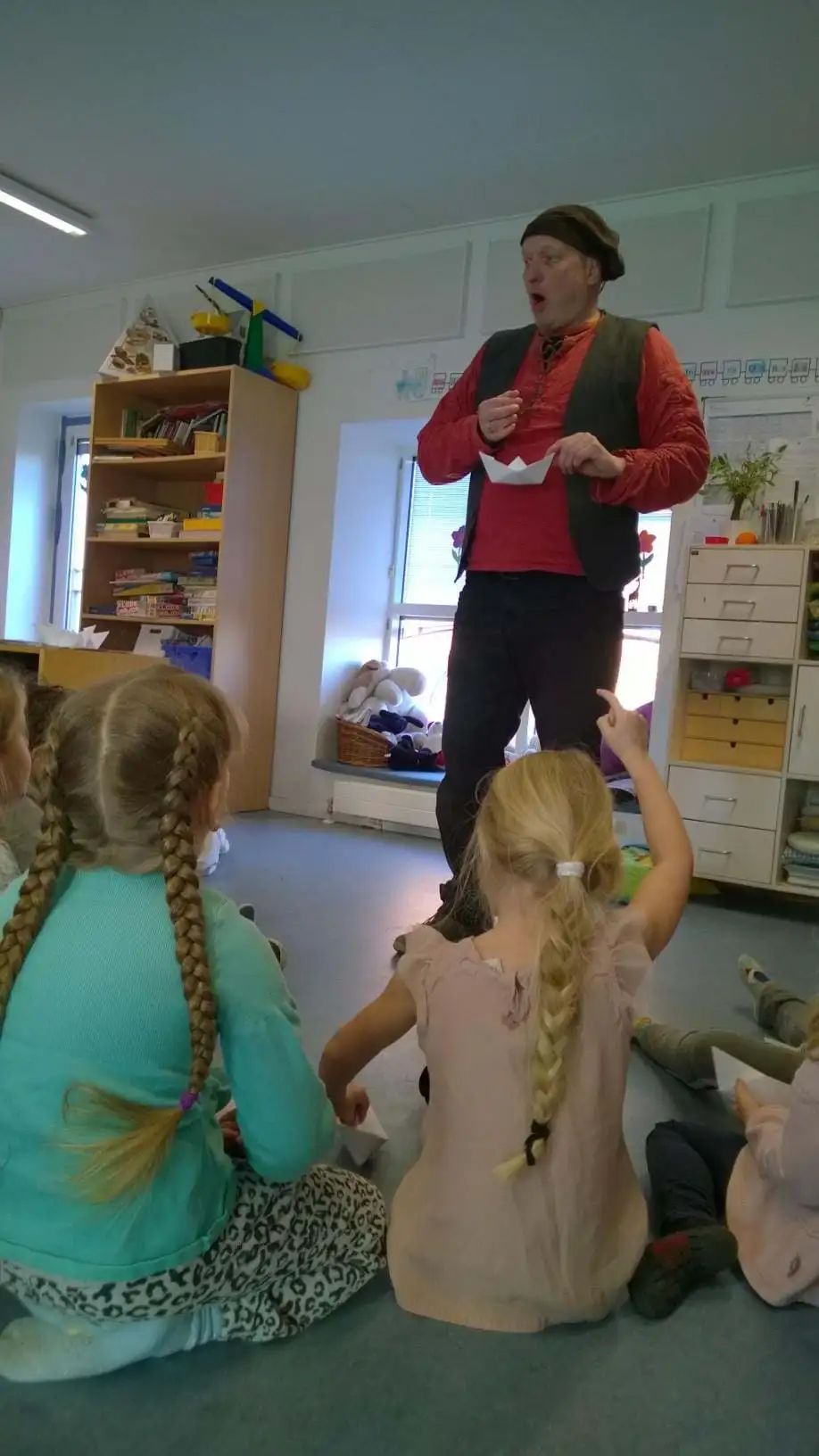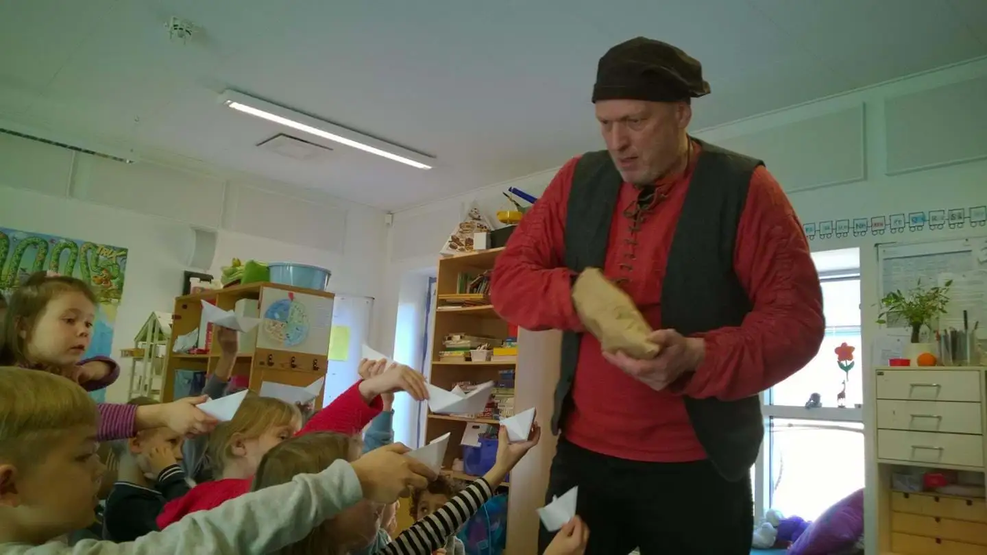 • André Andersen fortæller om Ruben og hans køjesæk i 0.A på Tikøb Skole – foto: Ida Wettendorff.